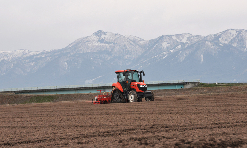 かつては人の手で行われていた作業。広大な土地をこの機械一台 で。